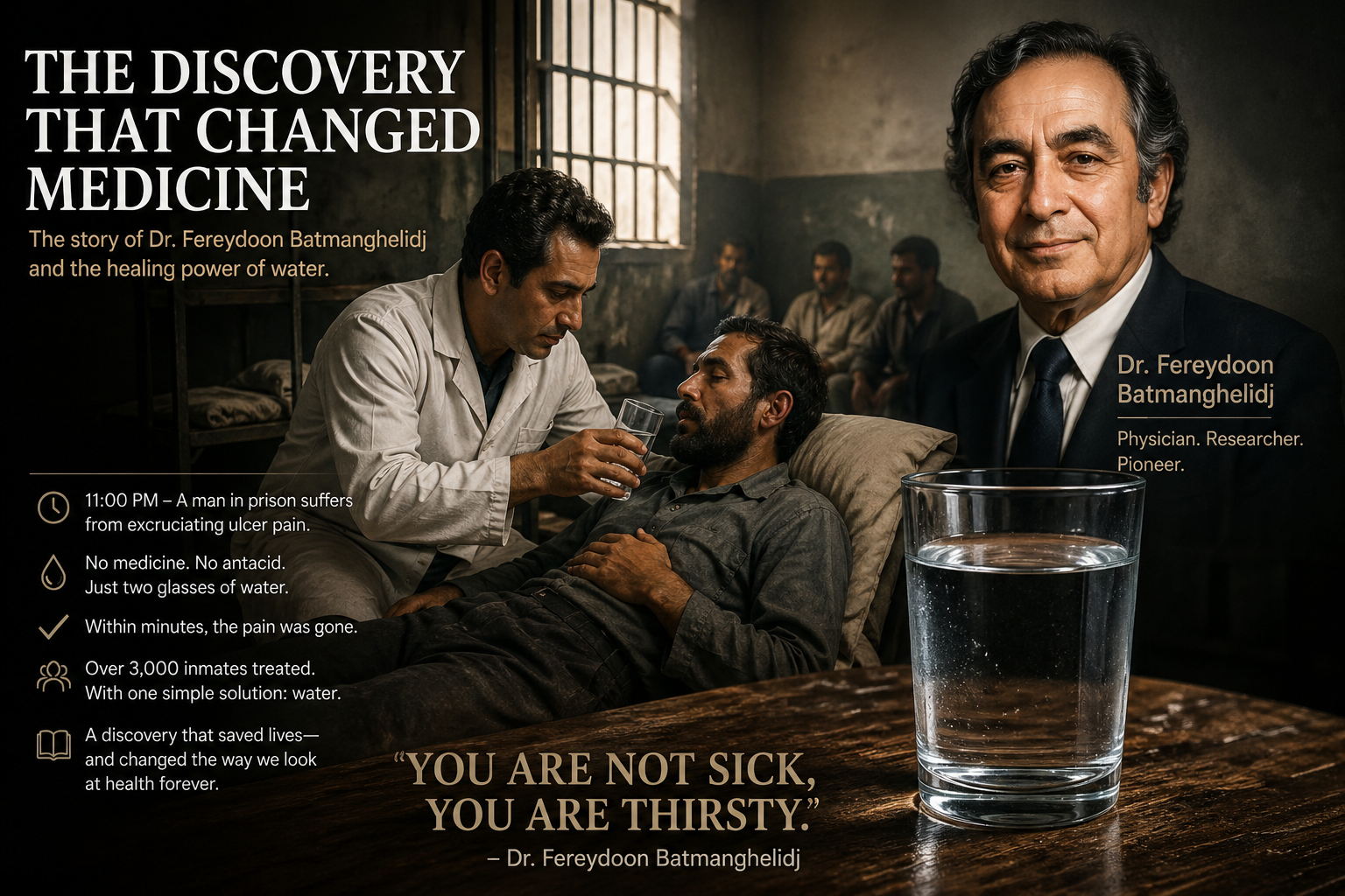 In the late 1970s, Fereydoon Batmanghelidj was a well-trained physician, educated in London, who returned to Iran to build something meaningful. Then the 1979 revolution hit, and everything shifted. He ended up imprisoned in Evin Prison, a place built for a few hundred people but overflowing with thousands. High stress, poor conditions, very little support. Not exactly where you’d expect insight to emerge.
